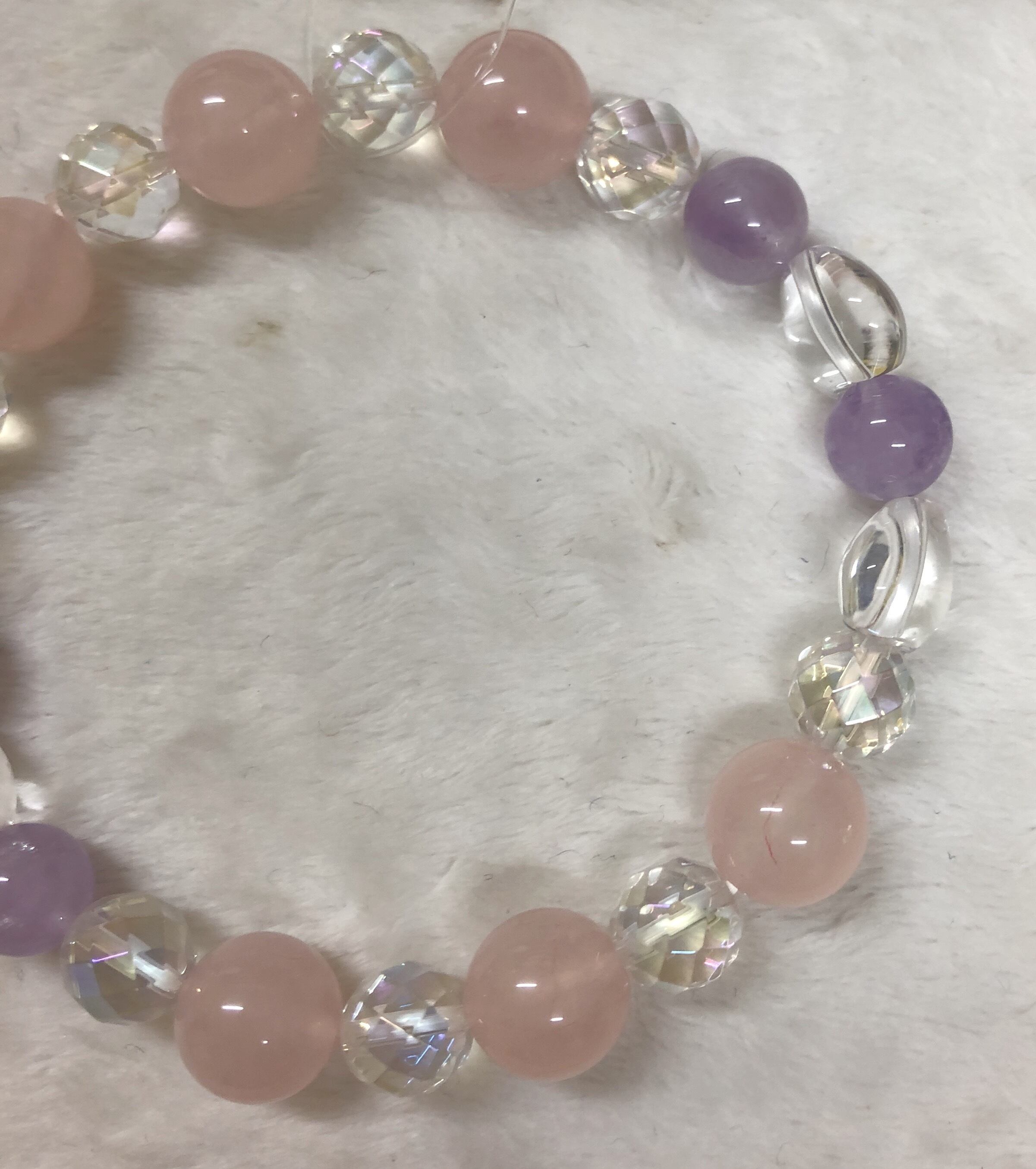 <<Pocketぽけっと>>60 ローズクォーツ・ラヴェンダーアメシスト・クリアクォーツ/天然石オリジナルブレスレット