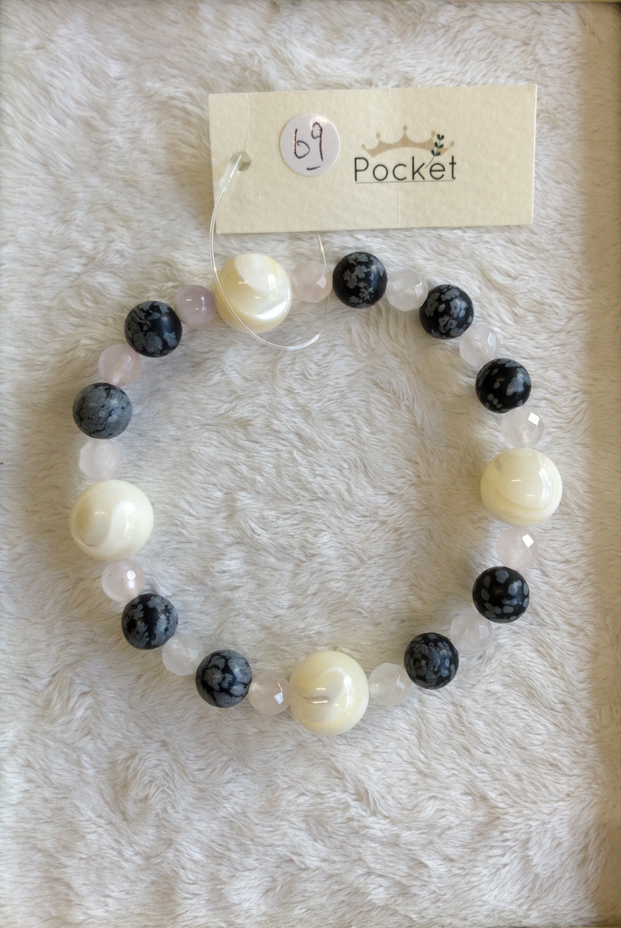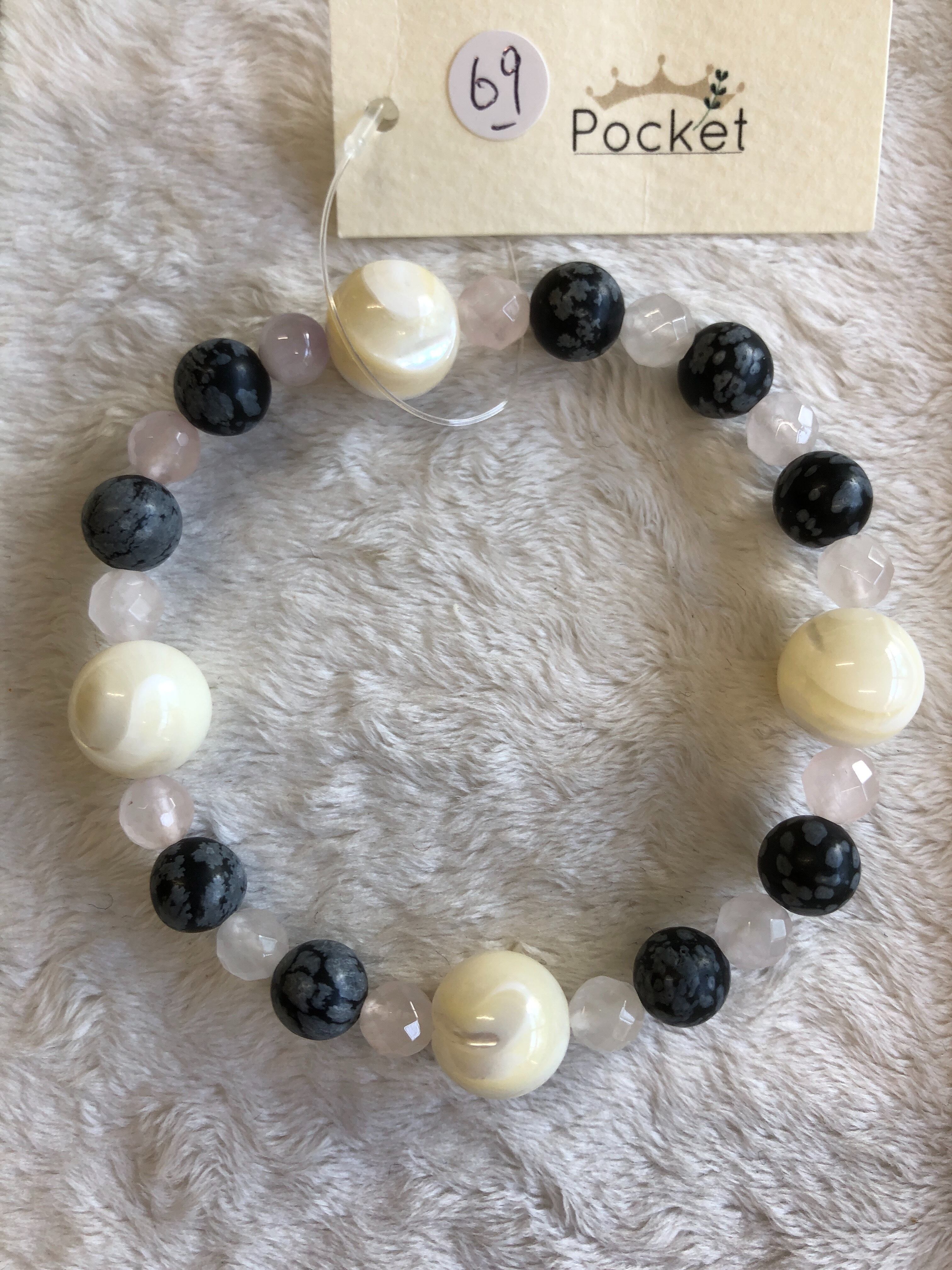<<Pocketぽけっと>>69 スノーフレーク・オブシディアン/天然石オリジナルブレスレット
