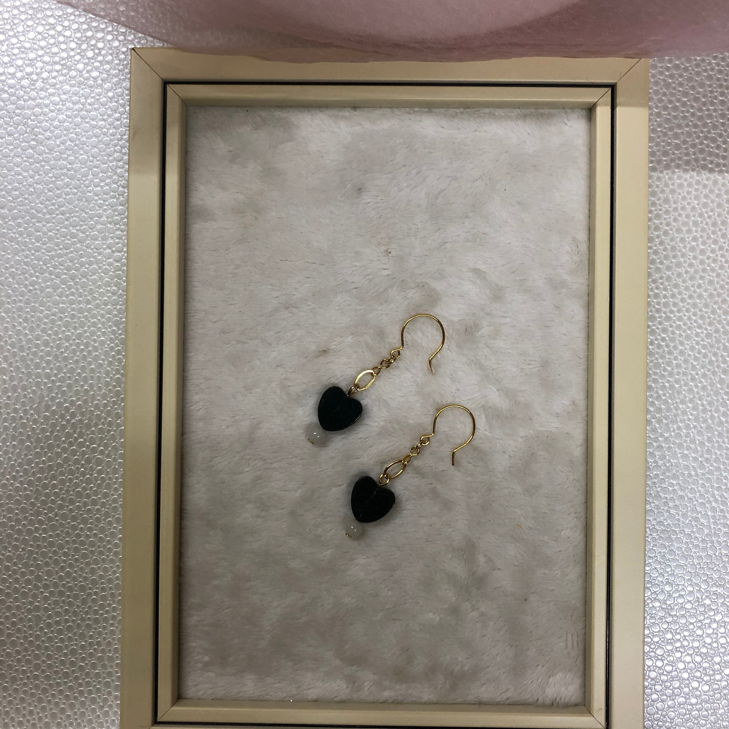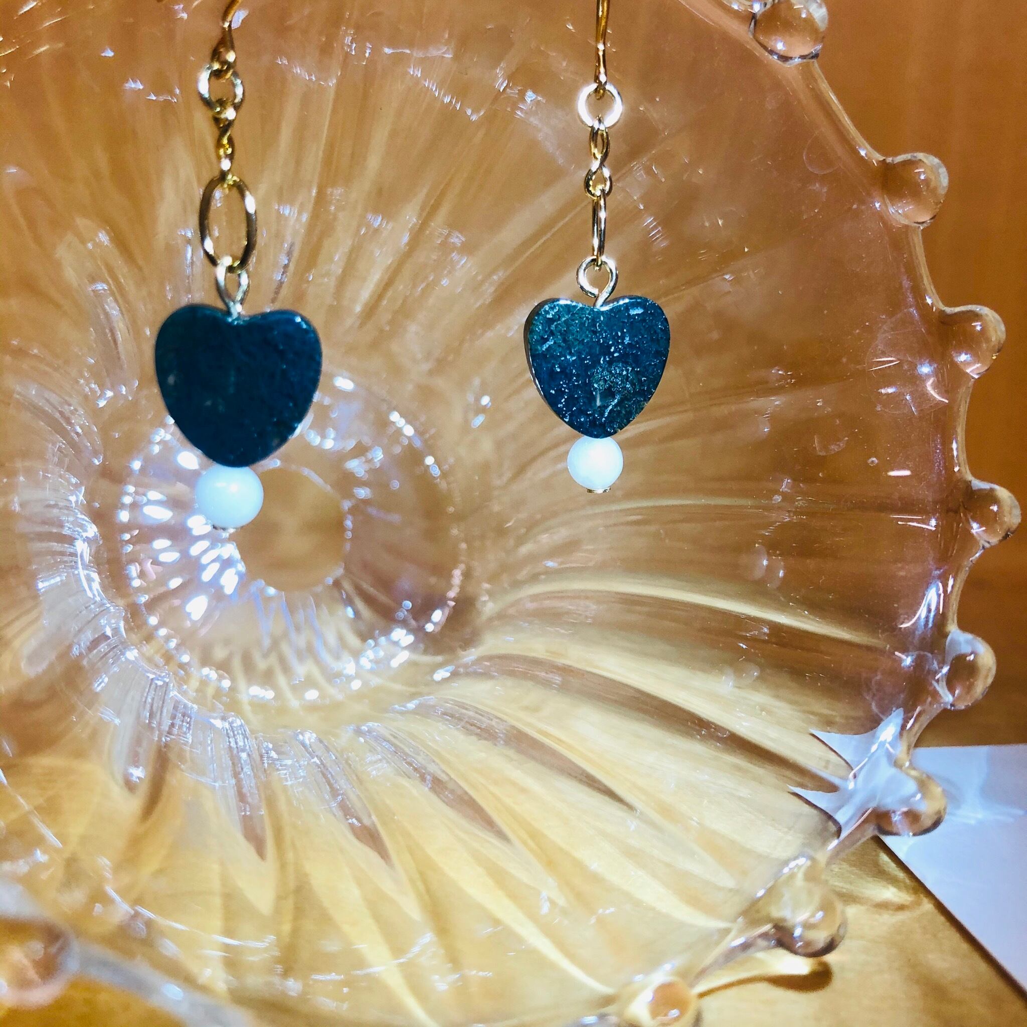 お買い上げありがとうございます!!<<Pocketぽけっと>>139 ハートシェイプオニキス・白翡翠ハンドメイドオリジナルピアス 0139