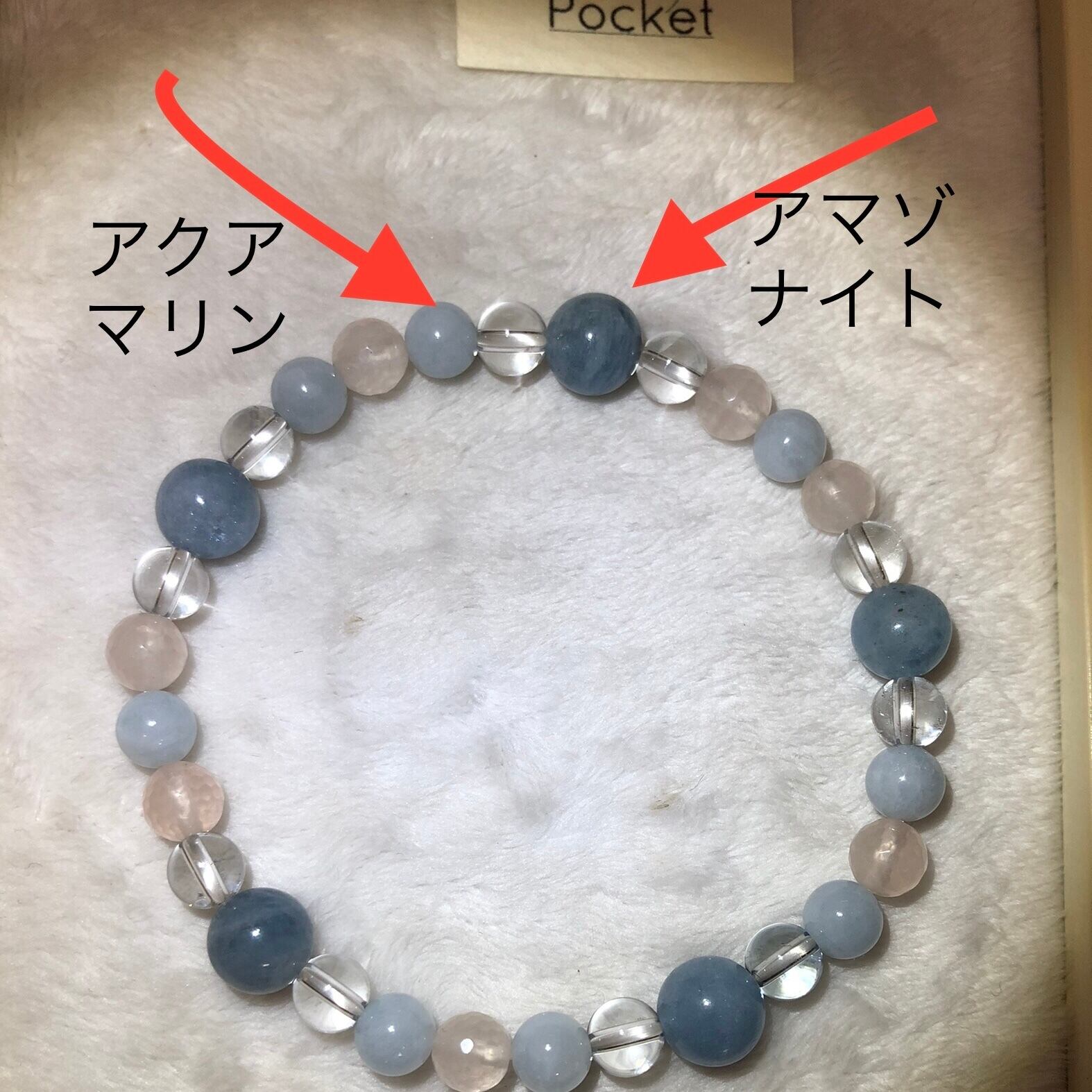 <<Pocketぽけっと>> 70 アクアマリン・水晶・アマゾナイト・紅水晶/ハンドメイド天然石オリジナルブレスレット 。
