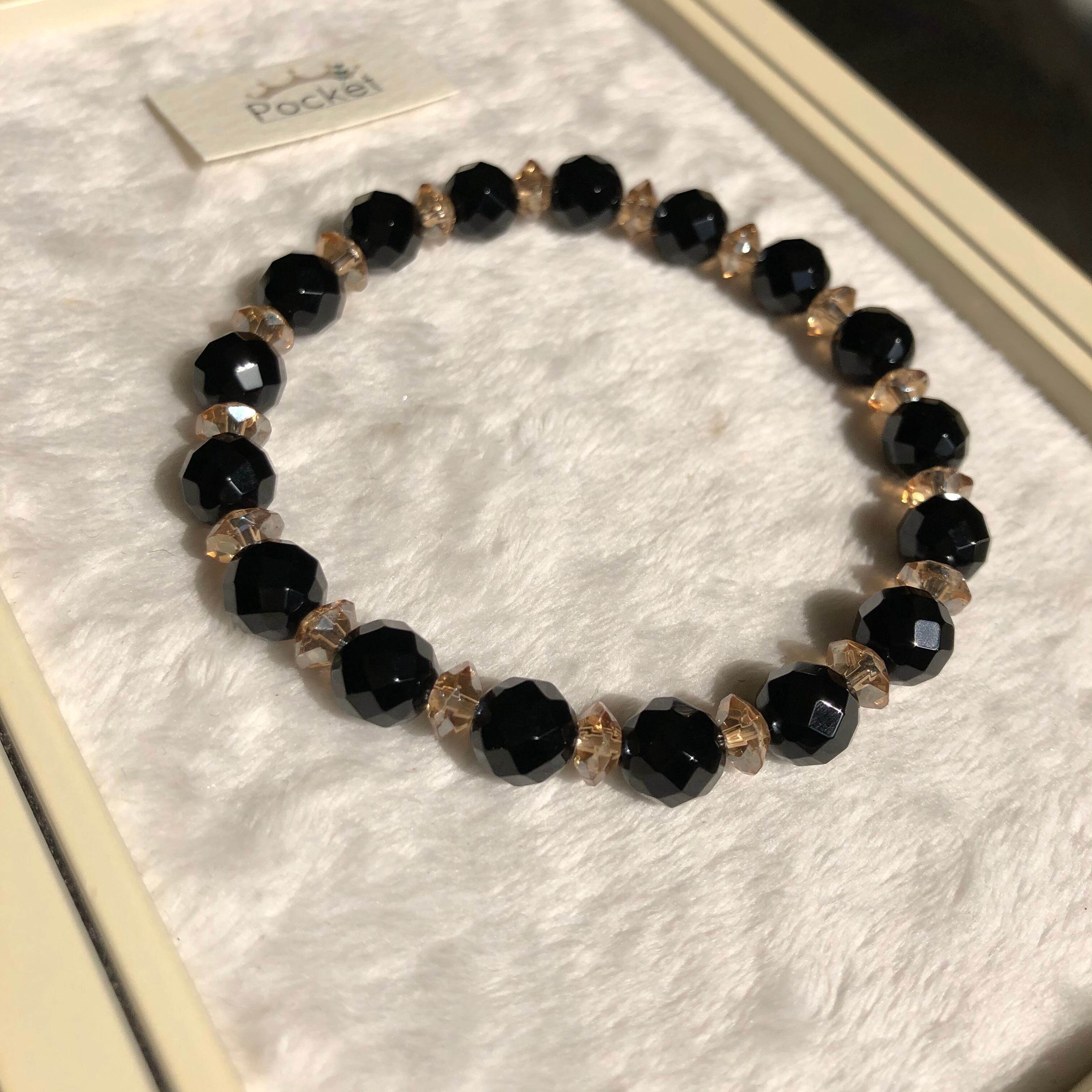 <<Pocketぽけっと>> 49 きらめく水晶&オニキス/ハンドメイド天然石オリジナルブレスレット 。