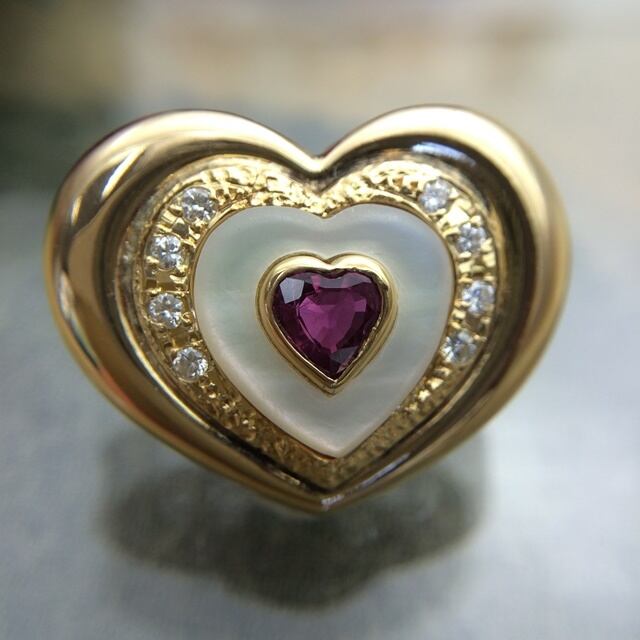 k18 金18 ハートシェープ・ペンダントトップ ルビー、シェル、ダイアモンド(小)