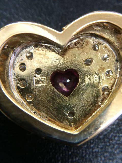 k18 金18 ハートシェープ・ペンダントトップ ルビー、シェル、ダイアモンド(大)