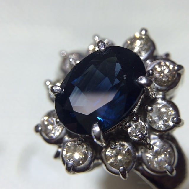 お預けありがとうございます。Pt900 ブルーサファイヤ ダイア入りリング 新同